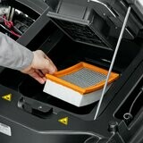 La nouvelle machine autoportée KM 90/60 R Bp Pack Adv se distingue par sa grande manœuvrabilité, son utilisation facile et sa maniabilité parfaite. Cette balayeuse mécanique à batterie sans émissions possède une conception robuste et compacte, dispose d'une surface Pick-up pratique et convient parfaitement aux utilisations prolongées. En parlant d'utilisations prolongées : la machine est équipée du système de décolmatage du filtre Tact unique, entièrement automatique et très efficace pour un travail continu sans dégagement de poussière. À cela s'ajoute le kit Home Base. Le concept Easy Operation confortable à utiliser complète le profil de la machine autoportée respectueuse de l'environnement utilisable en intérieur comme en extérieur. La batterie et le chargeur sont inclus.
